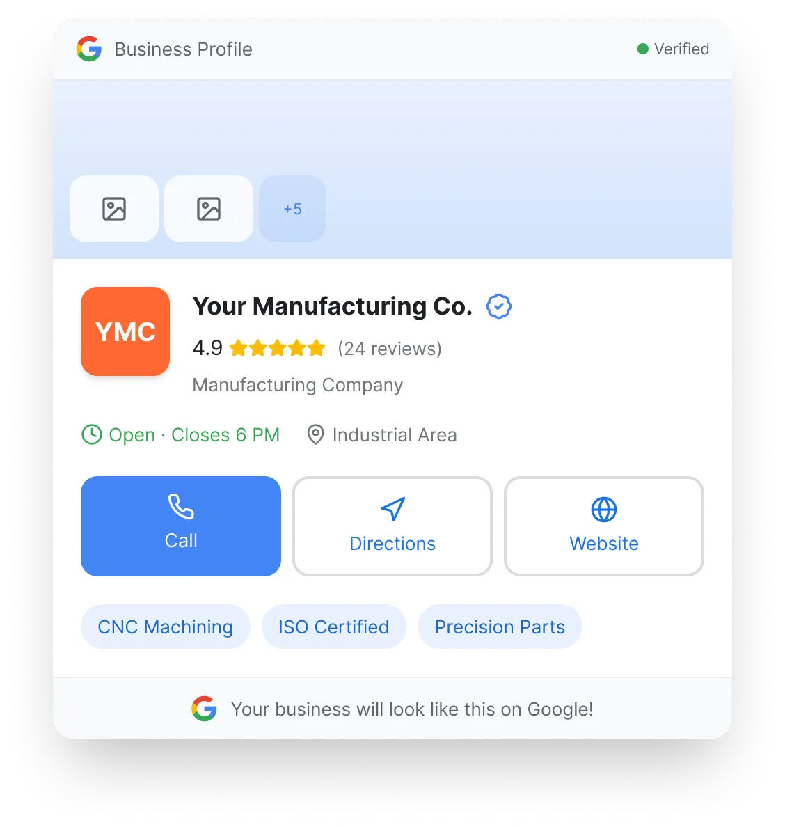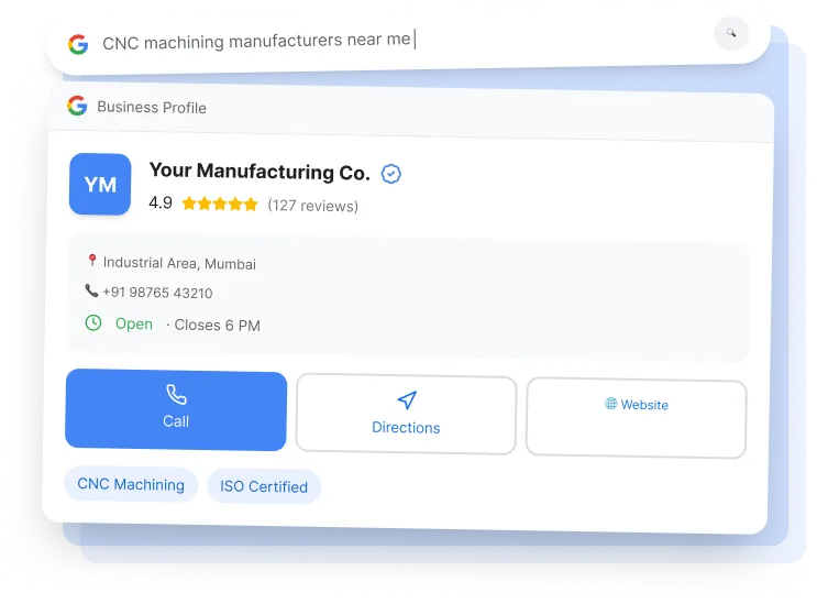 A Google Business Profile puts your manufacturing company right where buyers are looking.